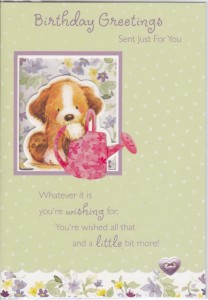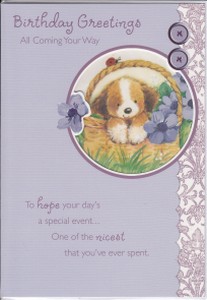 Happy Birthday Die Cut window, with colour images inside Message Outside: Birthday Wishes Item Code FOBD-CUTE-12 |